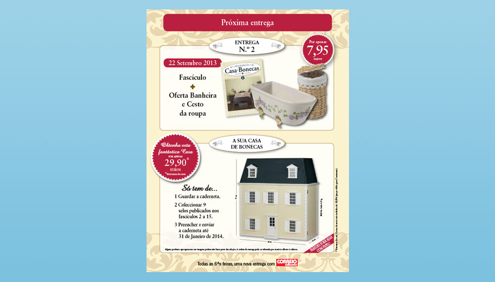 | 15 | Fascículo 15 + oferta de cadeira de baloiço e conjunto de brinquedos (soldadinhos) | 22-12-13 |